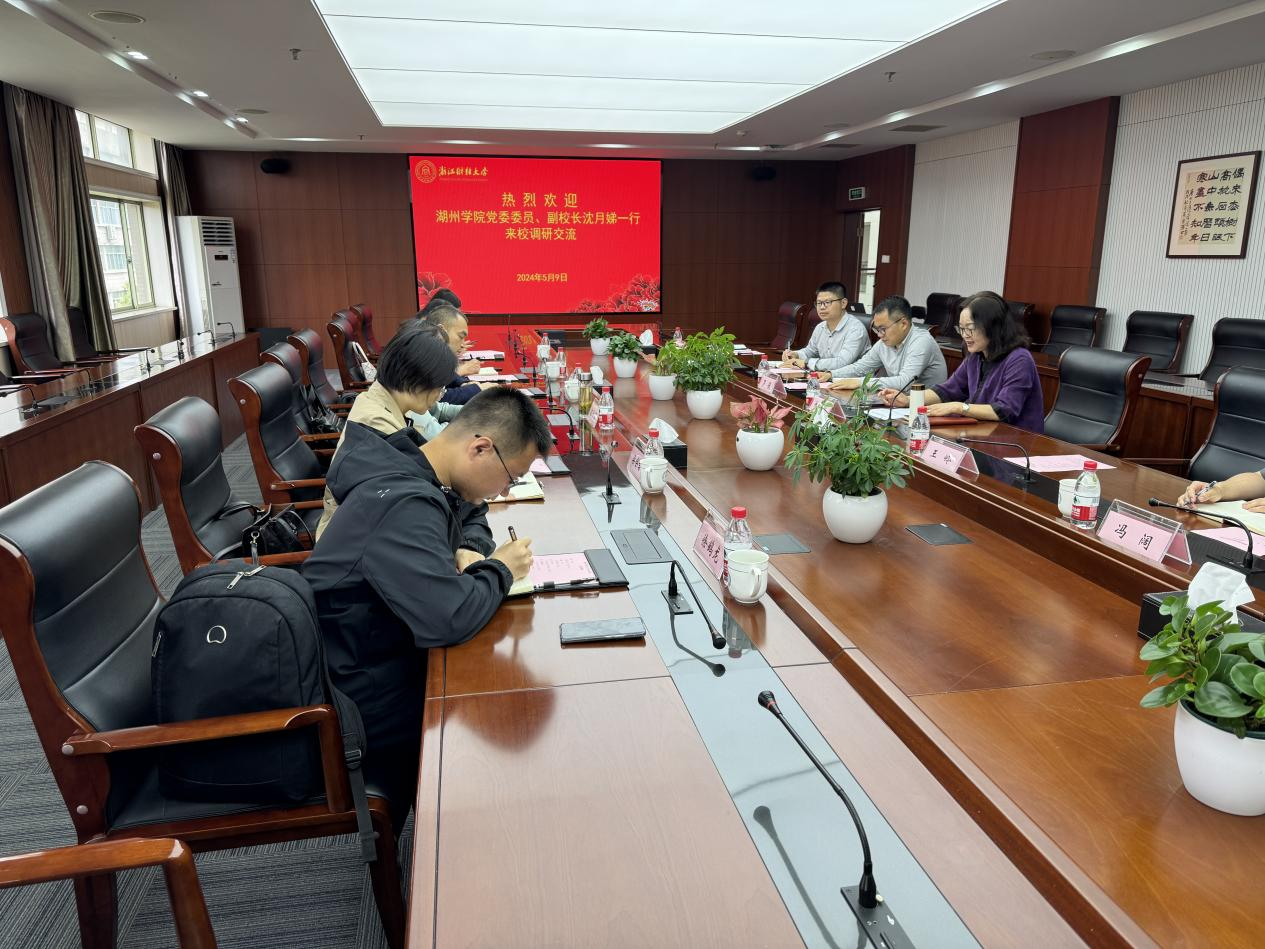 本网讯5月9日,湖州学院党委委员、副校长沈月娣一行来校调研交流,副校长郑亚莉热情接待了来访客人。