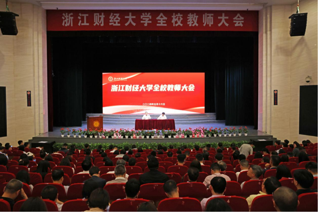 本网讯为深入实施“新财经战略”,扎实推进高水平大学建设,5月16日,学校召开全校教师大会。李金昌、魏江、郑亚莉、王奎泉、孙旭东、李占荣、徐晓东、董进才、程爽、申屠莉等校领导班子成员出席会议,会议由党委委员、副校长董进才主持。全体中层干部、全体专任教师(含思政教师),全体辅导员,各学院(研究院)教学、科研、研究生秘书参加会议。