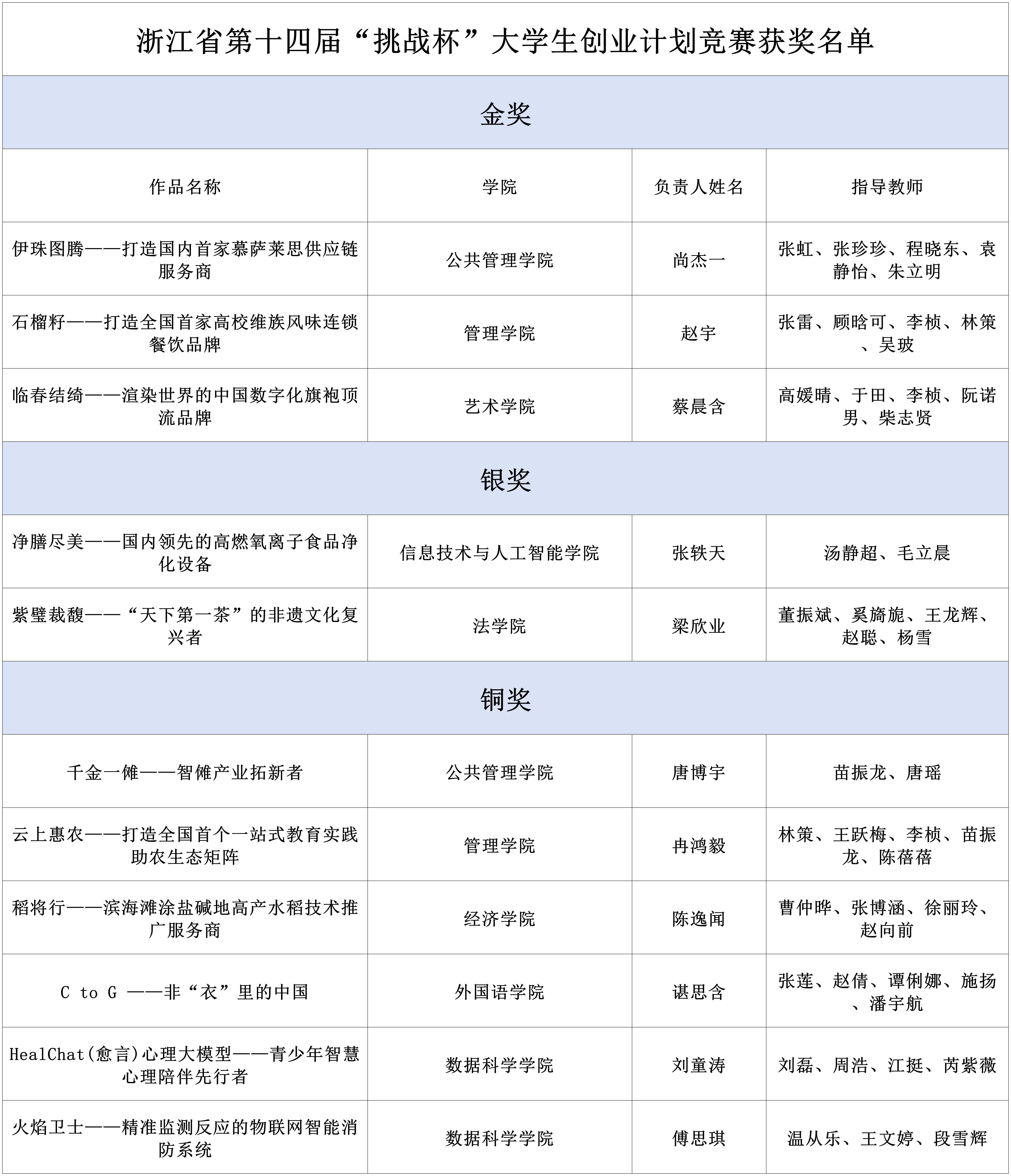 本网讯5月19日,浙江省第十四届“挑战杯”大学生创业计划竞赛决赛在温州落下帷幕。经过激烈角逐,学校荣获金奖3项、银奖2项、铜奖6项,并获得最佳进步奖,是学校近十年来在“挑战杯”大学生创业计划竞赛省赛中取得的最好成绩。校党委副书记徐晓东到现场看望参赛队伍。