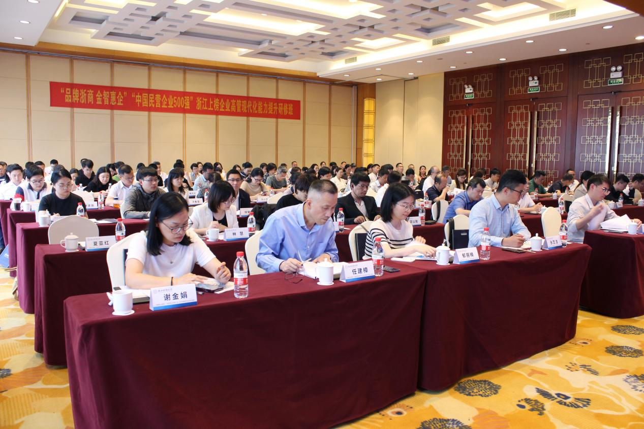 本次培训以“品牌浙商,金智惠企”为主题,省、市工商联相关人员,建设银行浙江省分行相关负责人、“中国民营企业500强”浙江上榜企业负责人等参加培训。培训涵盖课堂教学、参观调研等,内容紧密贴合学员们的实际工作需求和个人发展目标,既丰富又精炼,具有较强的针对性和实效性。学校沈玉平教授、张文宇教授、金通教授分别作专题辅导报告。