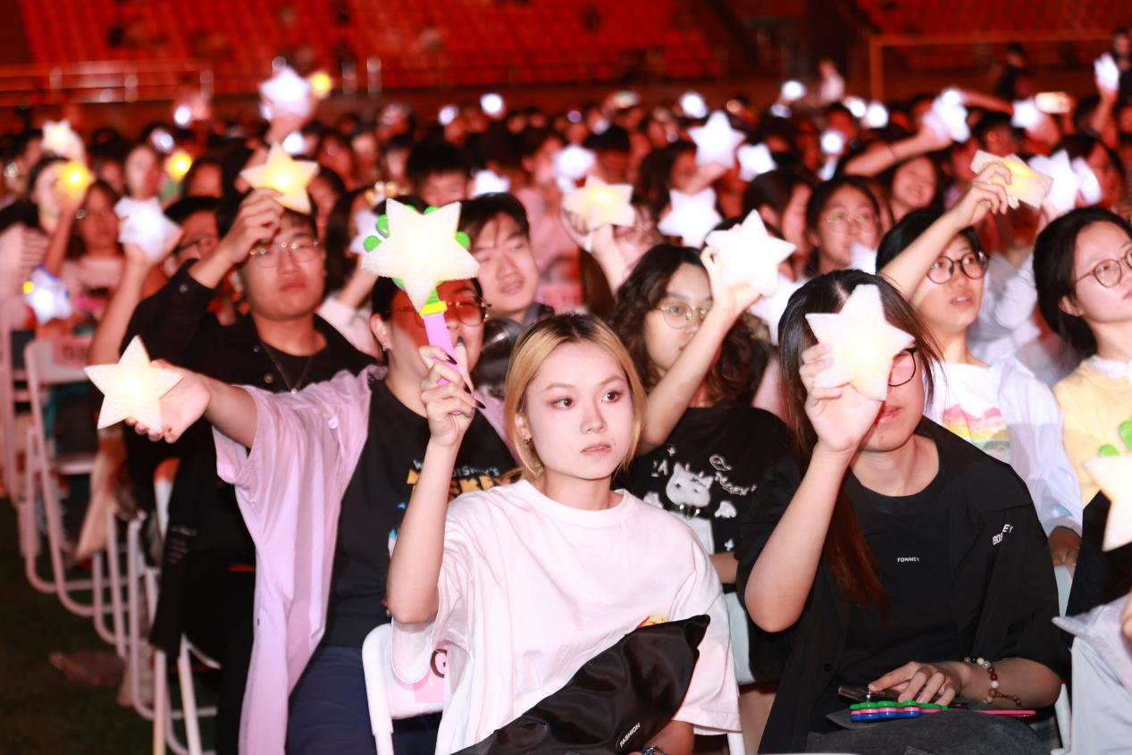 歌声嘹亮,音符飘扬,青春激荡,梦想起航。在一曲优美的校歌声中,全体校领导与同学们共同点亮荣耀星空。在场学生一起挥舞手中的星星,点亮属于自己的浩瀚星河!他们通过扫描大屏幕上的二维码,郑重写下了自己的名字,以闪亮的名字在浙财的绚烂星空里熠熠生辉!激情澎拜的歌声激励着在场所有人,浙财学子当不负时代所托,在砥砺前行中激扬青春力量。