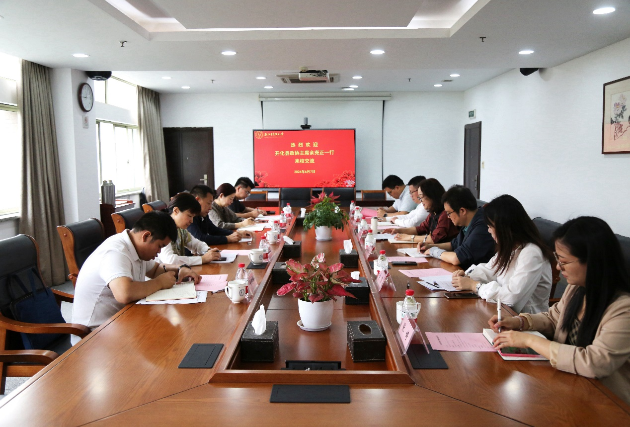本网讯6月7日,开化县政协余尧正一行来校走访调研,副校长郑亚莉热情接待了来访客人。