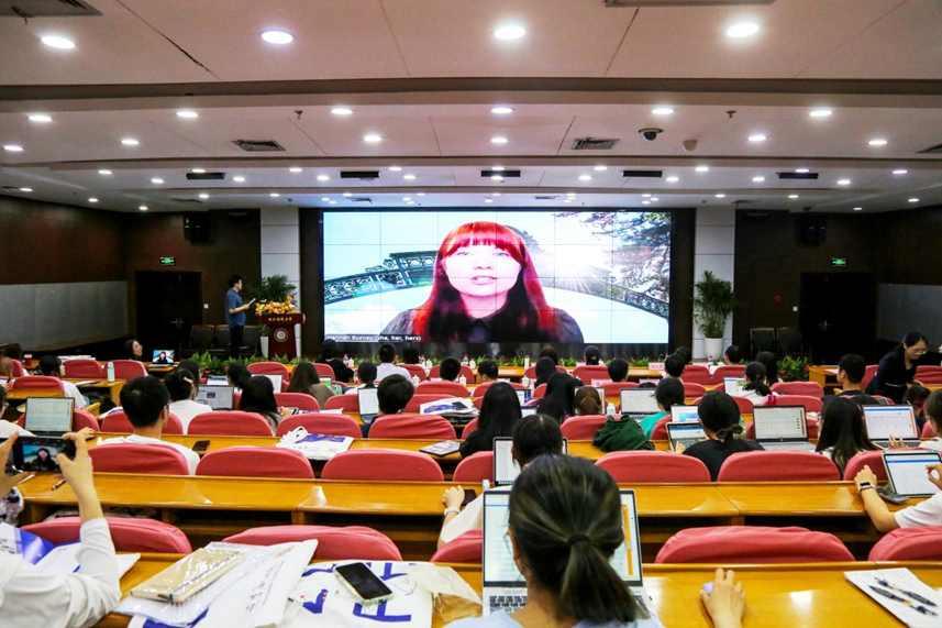 美国加州大学伯克利分校全球合作部副主任汉娜·伯尼女士代表境外合作高校致辞。她表示,希望学生充分利用此次学习机会和教育资源,体验浓厚的国际学术氛围。