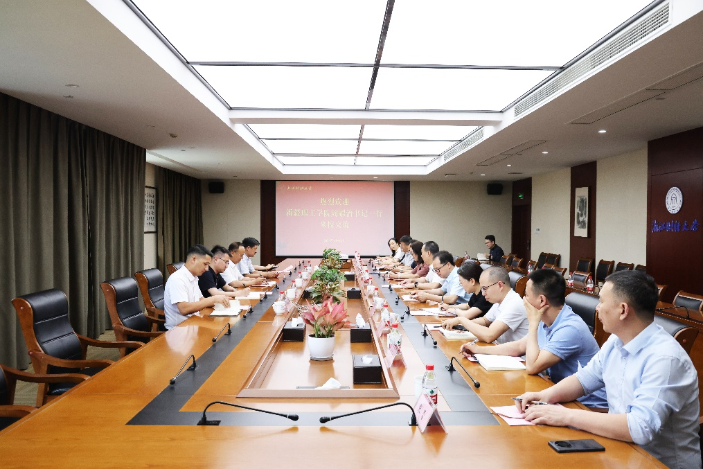 本网讯6月12日,学校与新疆理工学院战略合作签约仪式在下沙校区举行。校党委书记李金昌热情接待了新疆理工学院党委书记周耀治一行,副校长郑亚莉主持签约仪式。