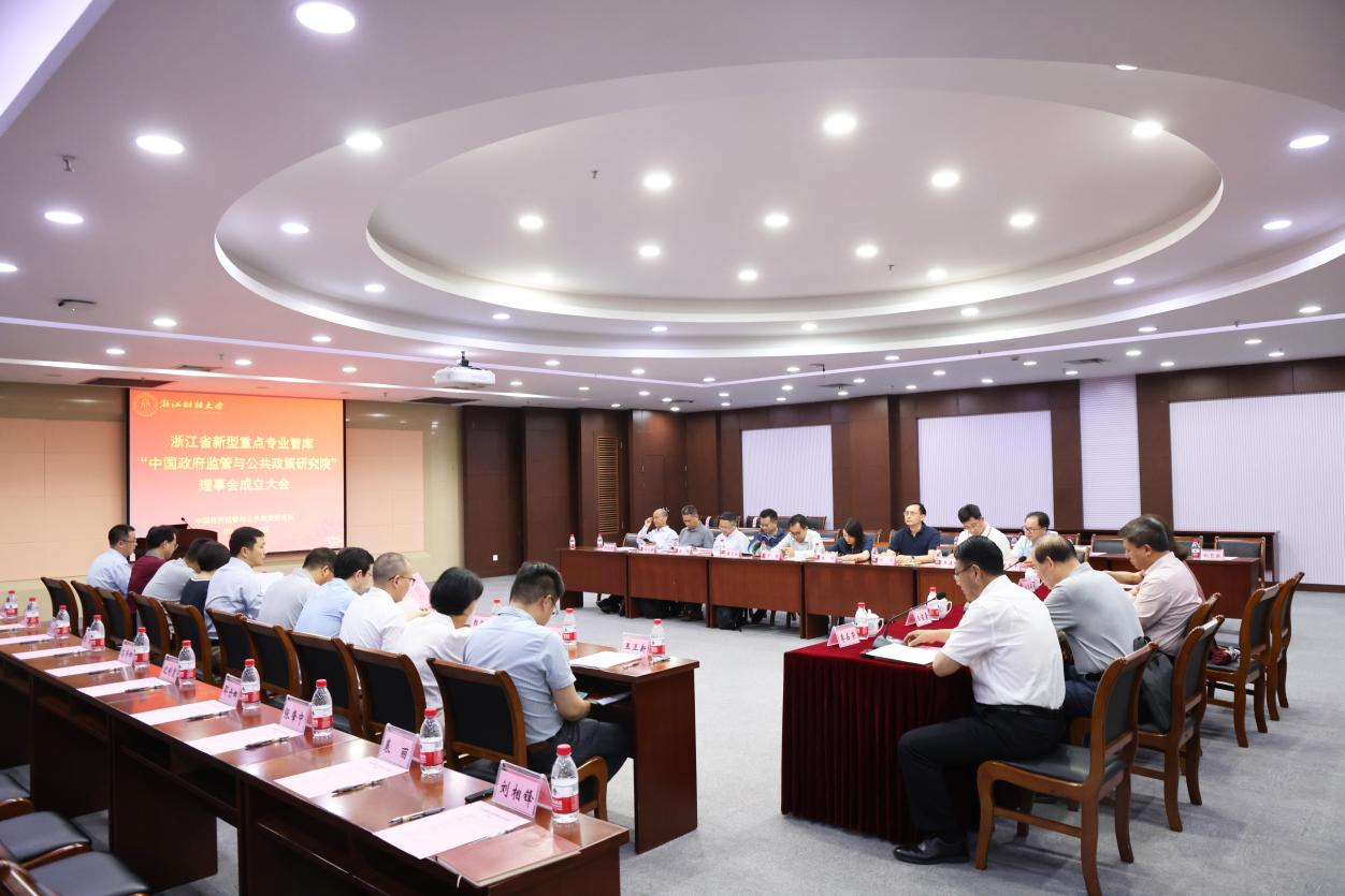 本网讯6月12日,浙江省新型重点专业智库“中国政府监管与公共政策研究院”(简称“浙财监管智库”)理事会成立大会在下沙校区举行。校党委副书记、副校长(主持行政工作)、浙财监管智库院长魏江,副校长李占荣、郑亚莉,浙财监管智库首席专家、执行院长王俊豪,校党委委员、组织部部长申屠莉出席会议,相关职能部门、学院(研究院)负责人参加会议。