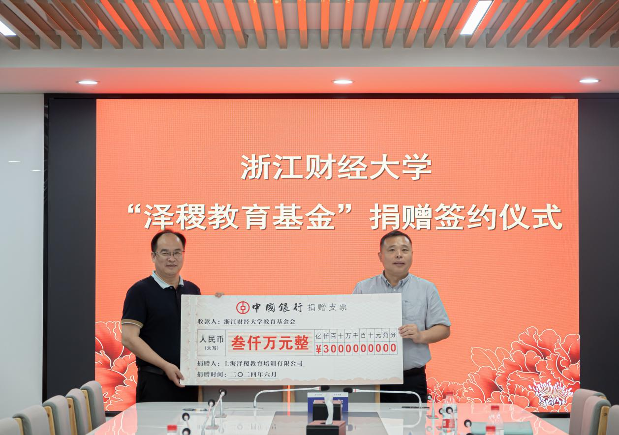 本网讯6月13日,“泽稷教育基金”捐赠签约仪式在下沙举行。校党委委员、副校长董进才,上海泽稷教育培训有限公司董事长蒋望等出席仪式。