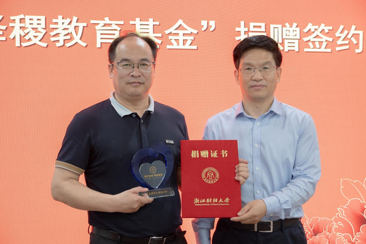 仪式上,董进才向蒋望颁发了捐赠证书与纪念杯。蒋望与校友办主任吴玻、管理学院党委书记朱力明共同签署了捐赠协议,并赠予捐赠支票。