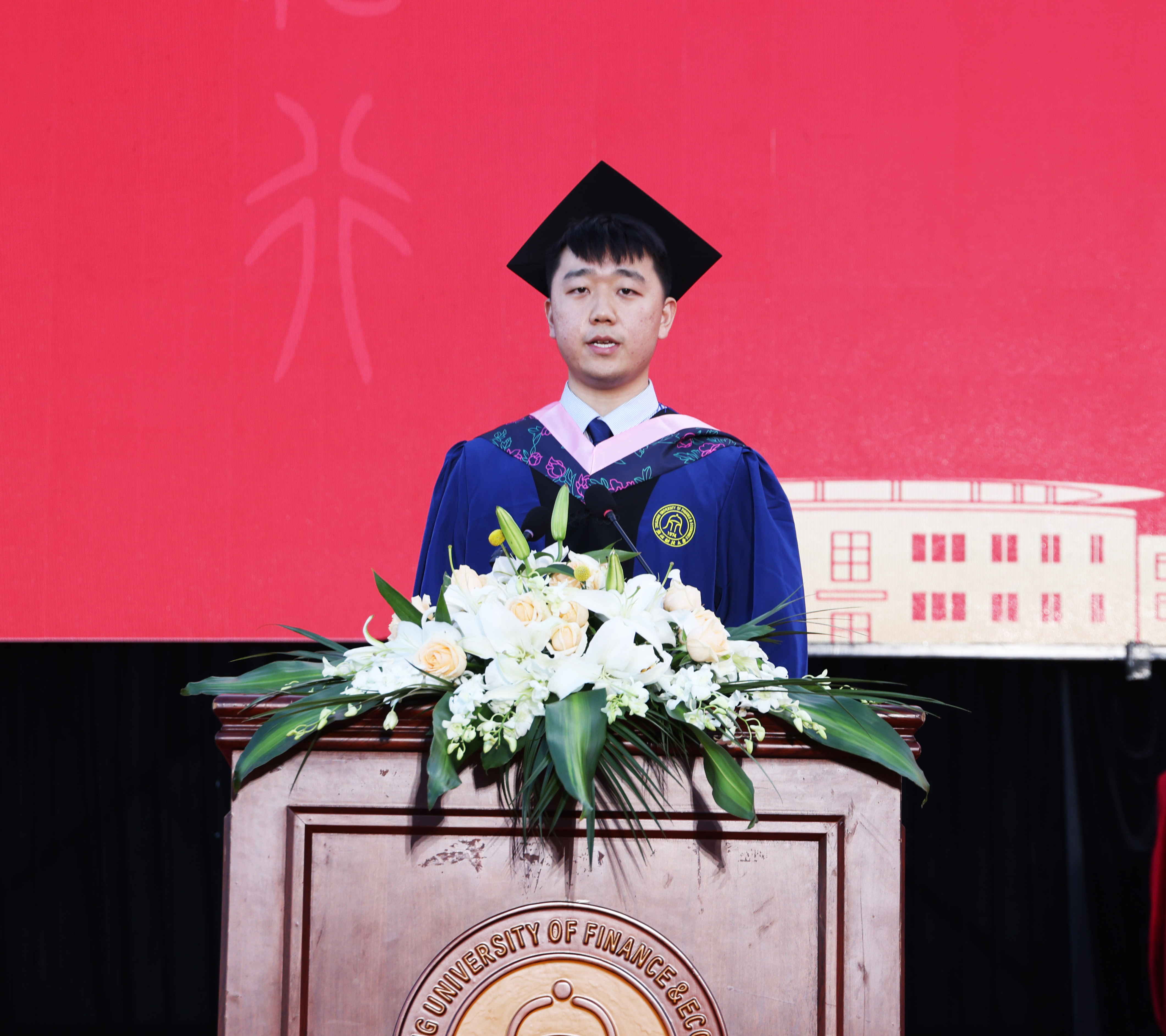 毕业研究生代表、浙江研究院21级管制经济学专业学生左立国回首了浙财求学奋斗的成长历程,表示将努力践行浙财精神,心怀梦想、奋勇前行,努力为党和国家事业发展做出浙财贡献、奉献浙财力量。