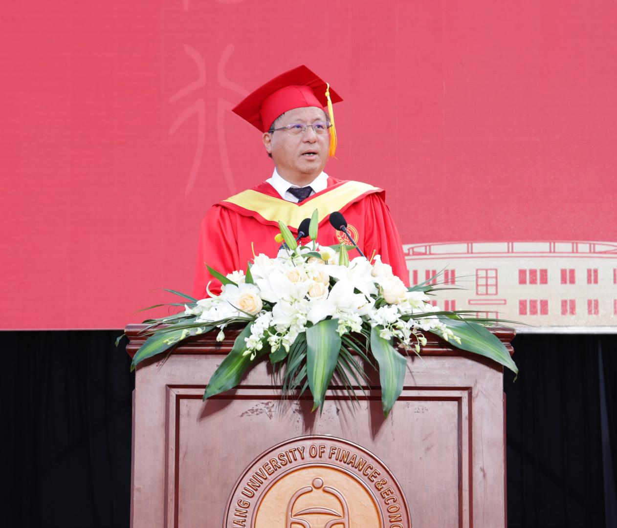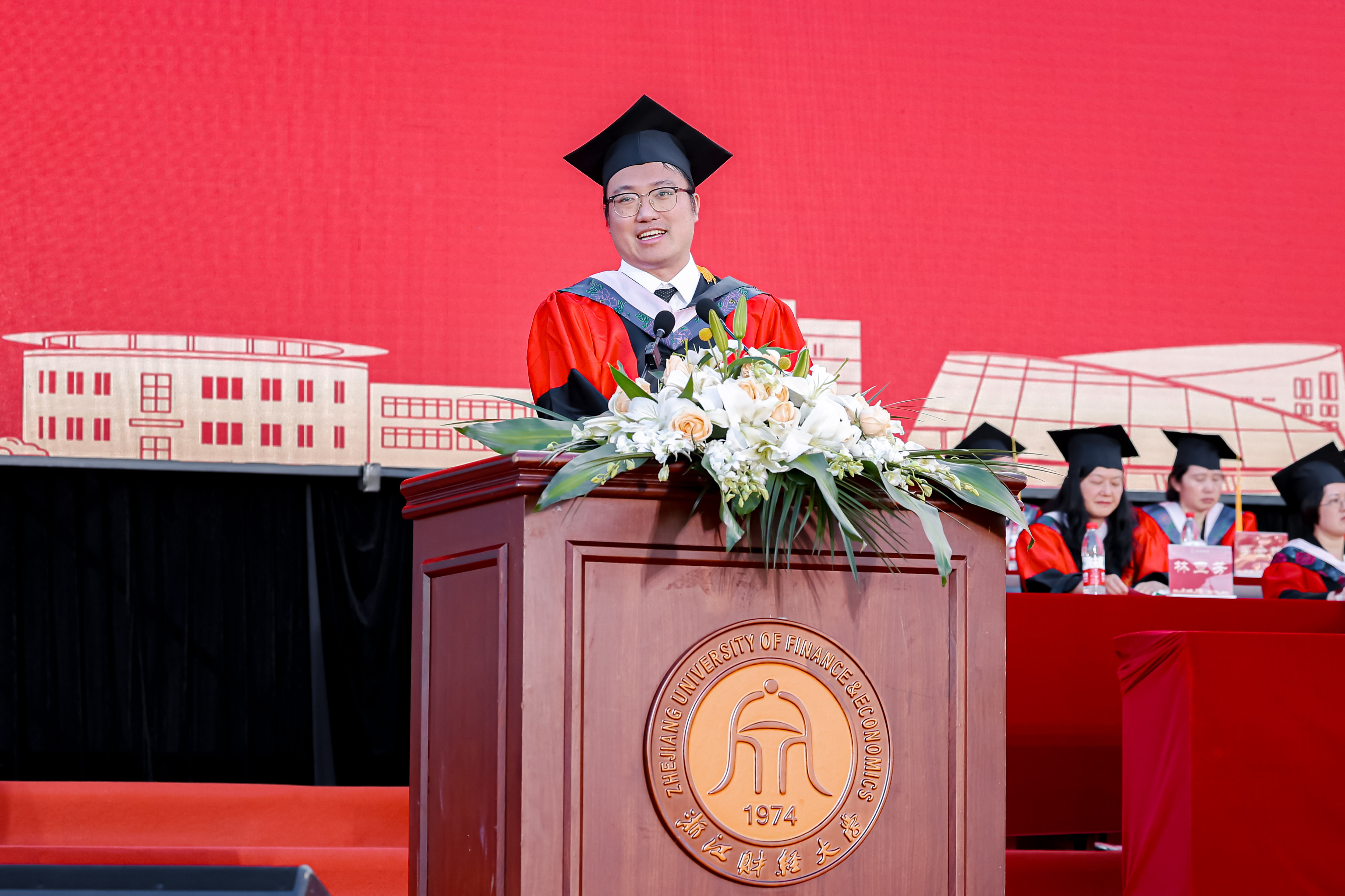 校党委副书记、副校长(主持行政日常工作)魏江以“激扬崇实之精神 成就完全之人物”为题,与毕业生们共同回首在浙财度过的四年时光。魏江希望毕业生带着“明德笃学、崇实创新”的浙财精神行稳致远开启新的人生旅程。