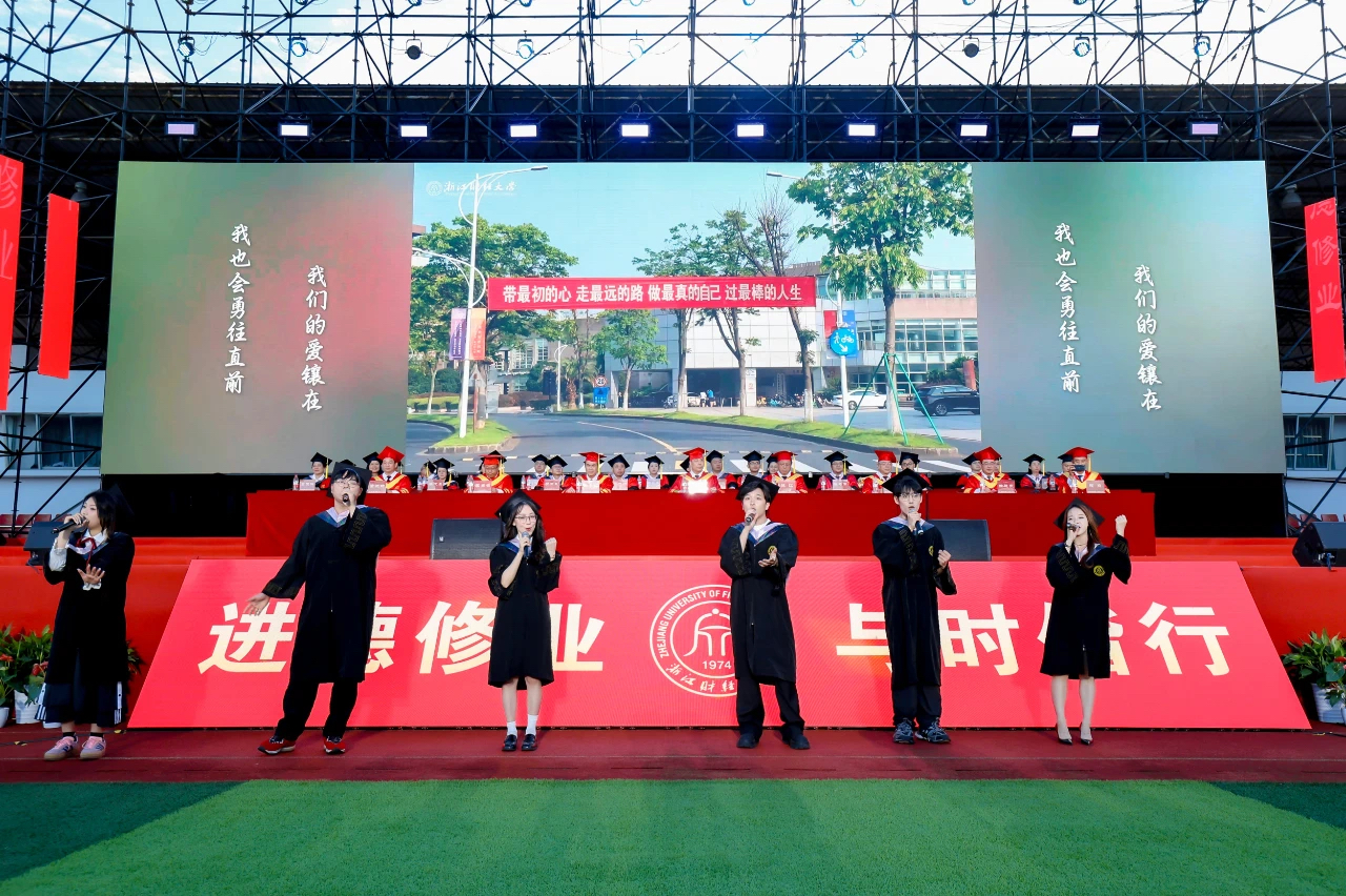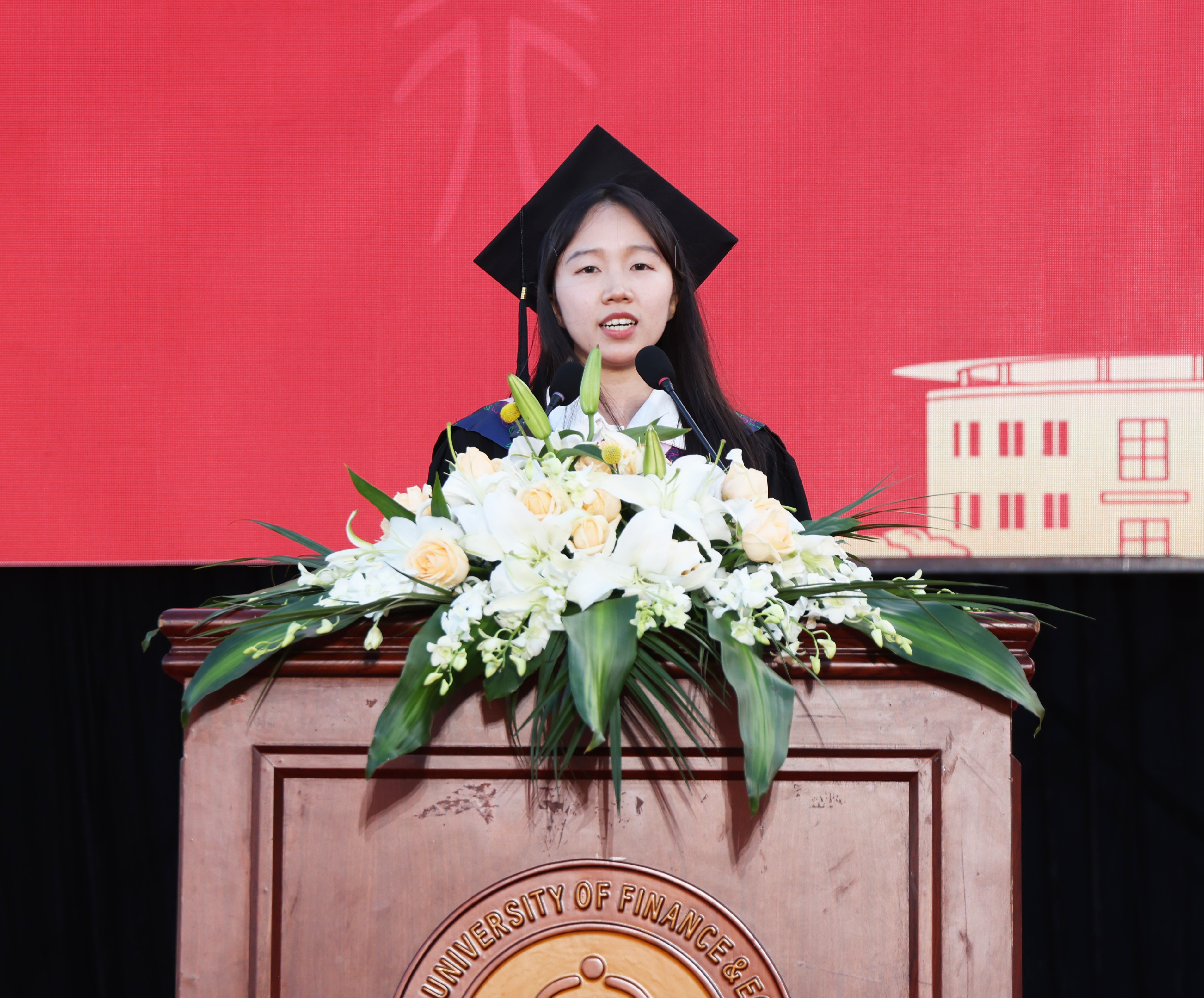 毕业本科生代表、艺术学院20级艺术经纪班学生廖英姿讲述了在校努力拼博,奋勇争先的青春故事,表示要用实际行动书写中国式现代化新征程中浙财青年挺膺担当新篇章。
