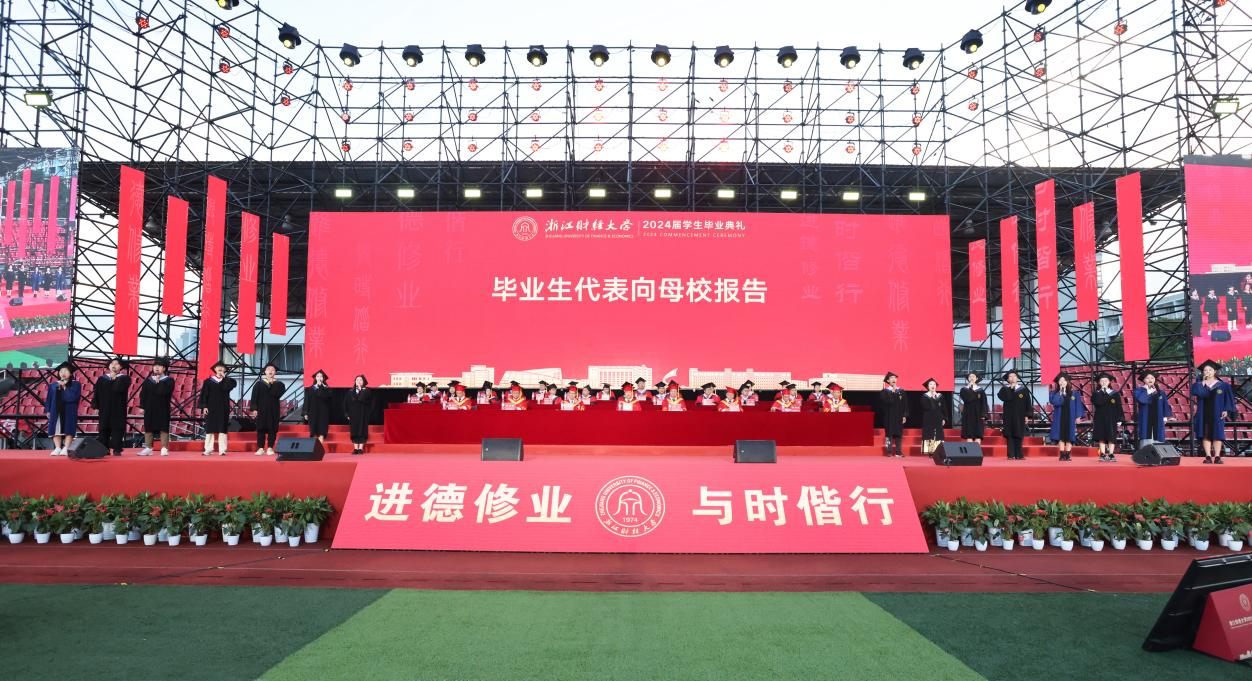 青衿芳华凌云志,潮涌青春向未来。6月18日,学校2024届学生毕业典礼在下沙校区隆重举行。校领导李金昌、魏江、王奎泉、孙旭东、李占荣、董进才、程爽,相关职能部门负责人、各学院领导、教师代表、2024届全体毕业生、400余位毕业生家长代表出席典礼。典礼由校党委副书记徐晓东主持。