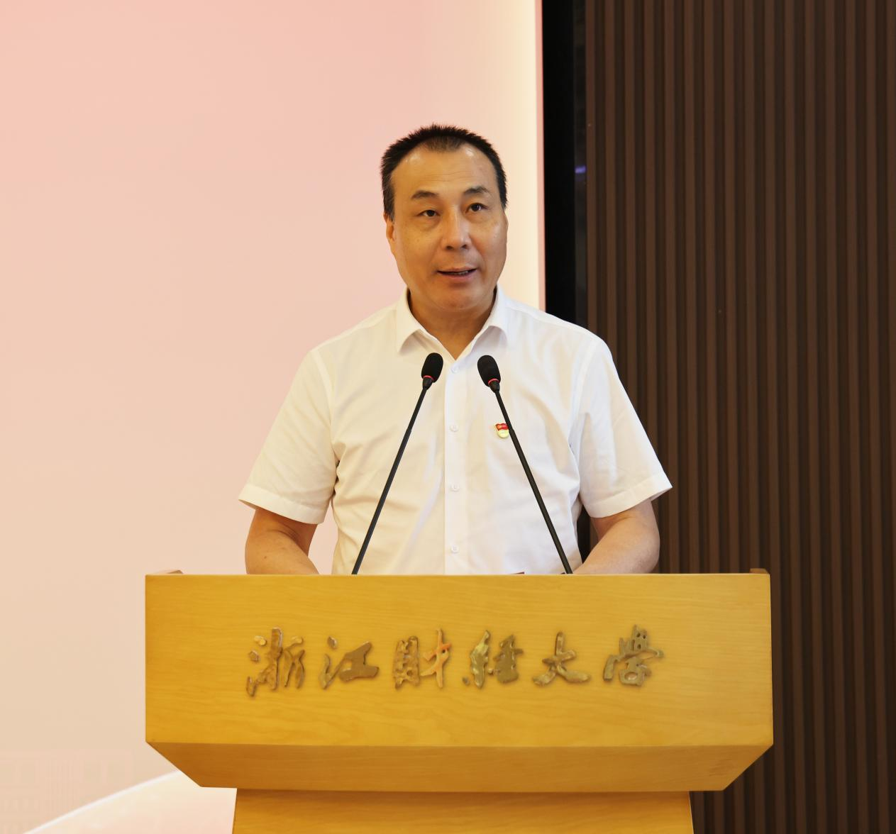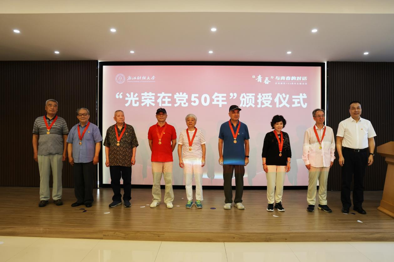 校党委书记李金昌向光荣在党50年老党员们致以崇高的敬意,向为学校事业发展辛勤奋斗的师生党员们表示亲切的问候。他表示,老党员们在党爱党半个世纪,是党和国家事业发展的亲历者和贡献者。今年恰逢建校五十周年,老党员们五十年的奋斗征程与学校事业发展同频共振,正是广大老党员的长期耕耘和默默付出,成就了我们党和人民事业蓬勃发展的大好局面,助推了浙财如今的蒸蒸日上。我们要时刻牢记,尊重老党员就是尊重党的光辉历史,爱护老党员就是爱护党和国家的宝贵财富,重视老党员就是重视党的伟大事业,致敬老党员就是致敬为学校事业发展奋斗的全体浙财人。