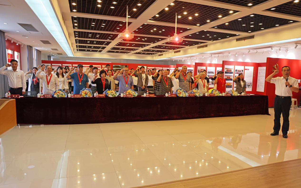 李金昌带领全体师生党员重温入党誓词,并为8名党龄满50周年的老党员举行了“光荣在党50年”纪念章颁授仪式。学生党员代表为老党员献花,共同致敬老党员。师生党员集体过政治生日。