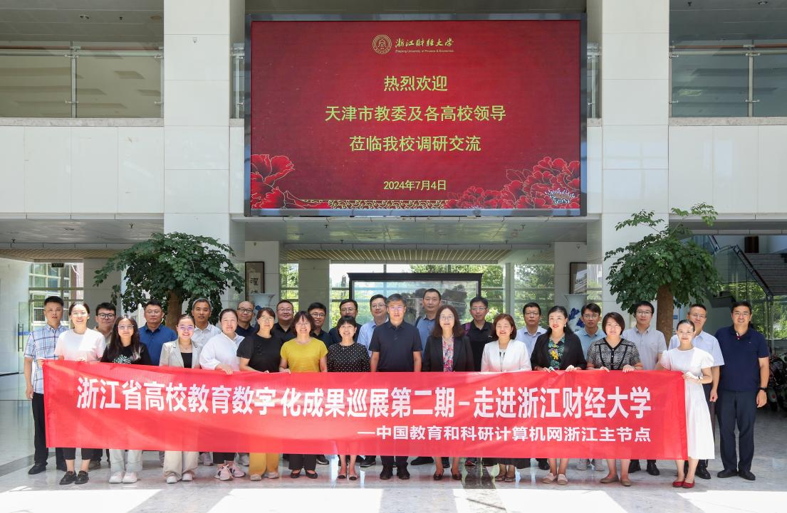 数字化办公室负责人介绍了我校“云上浙财”建设、教育数字化等方面的具体实践与成效。双方就如何更好地整合校内外资源推进数字化建设开展深入交流。