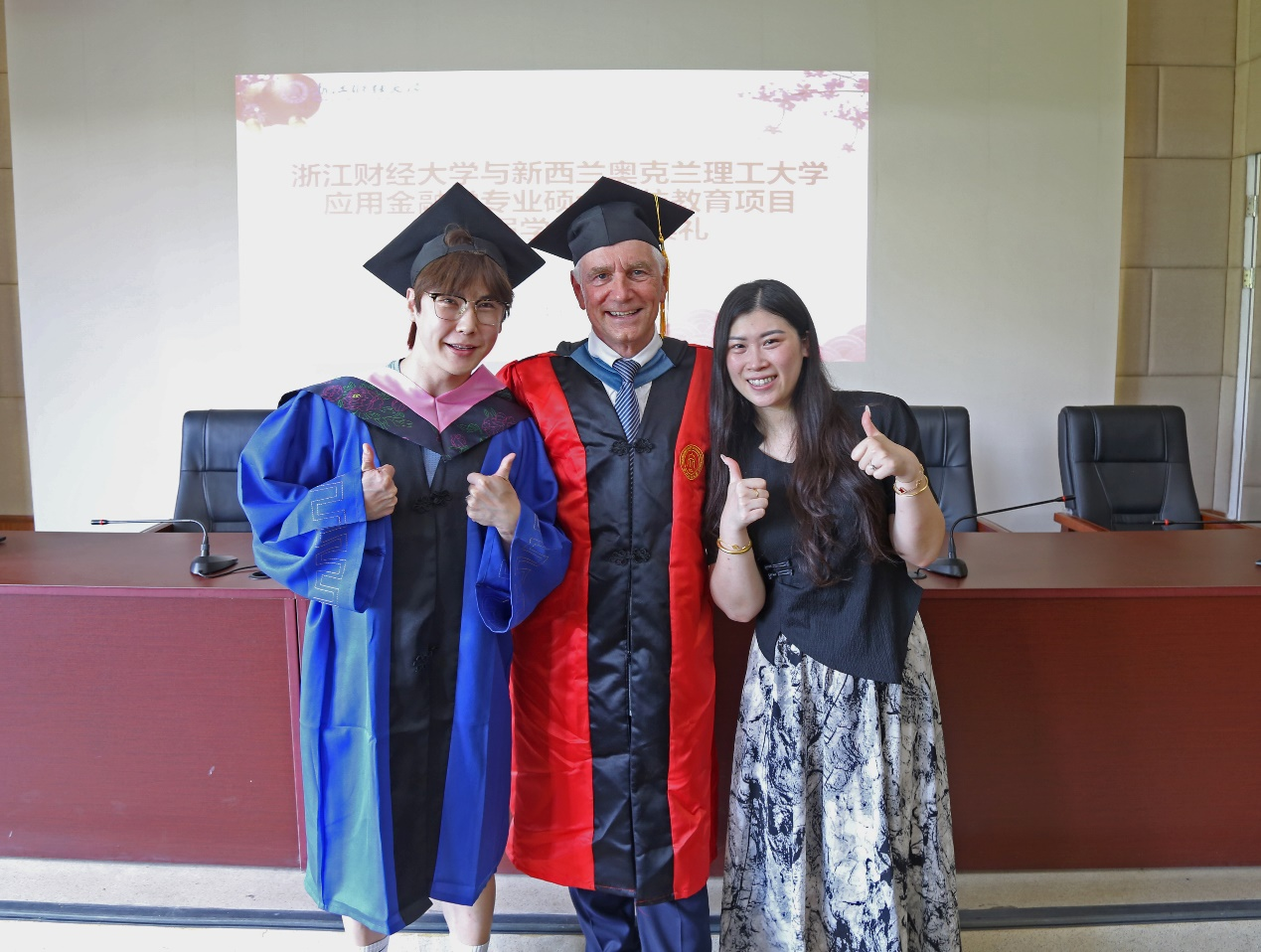 随后,肯·李代表奥克兰理工大学为毕业生拨穗,并颁发学位证书。参与活动的毕业生纷纷表示,将怀揣梦想,勇毅前行,为金融强国建设和国际合作贡献智慧和青春力量。