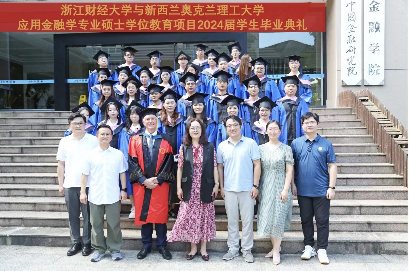 本网讯7月5日,学校与新西兰奥克兰理工大学合作举办的应用金融学硕士项目2024届学生毕业典礼在下沙校区举行。副校长郑亚莉、奥克兰理工大学合作项目主任肯·李、我校金融学院、国际处负责人,以及中新项目2024届毕业生和亲友代表等参加活动。