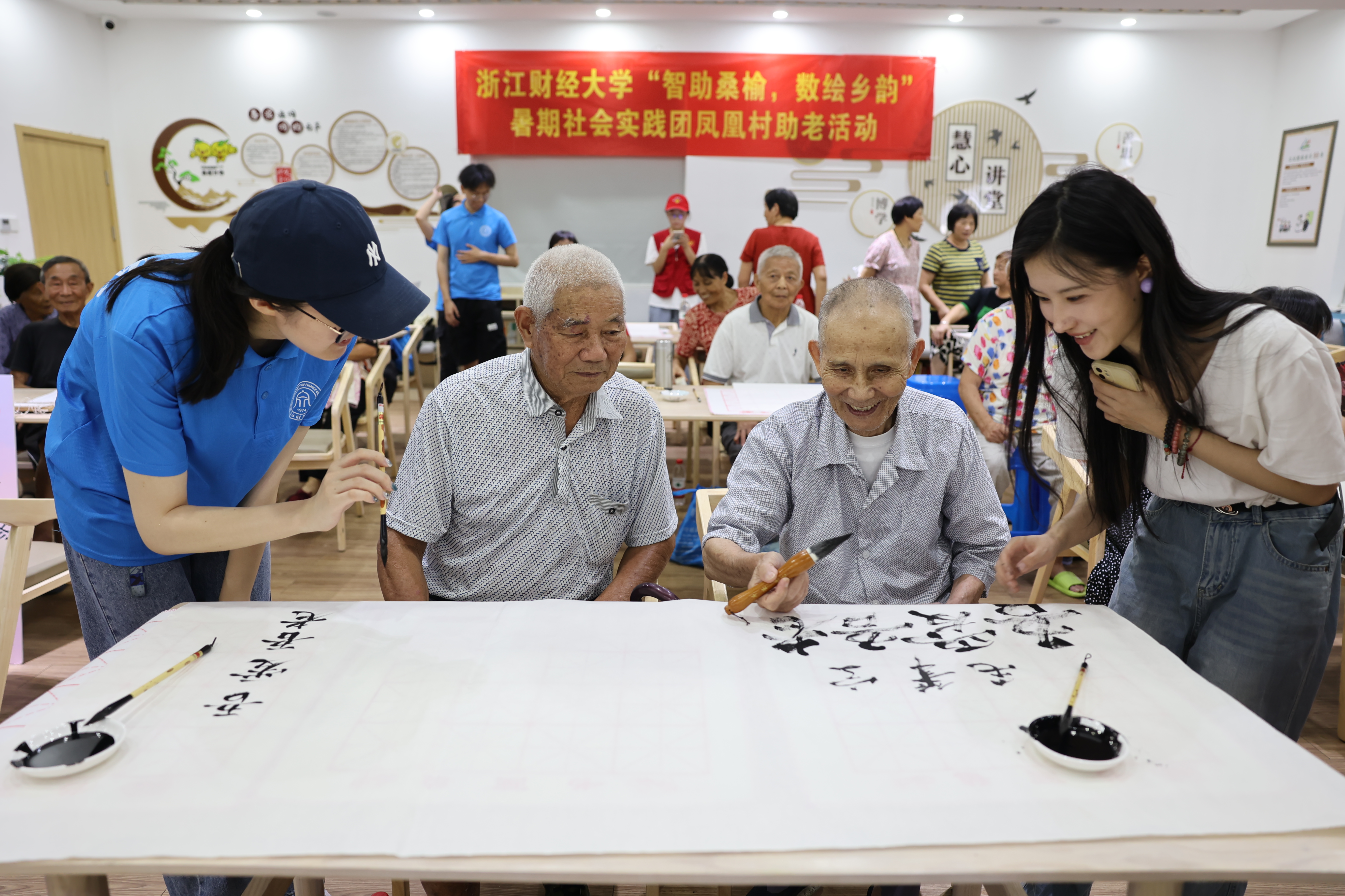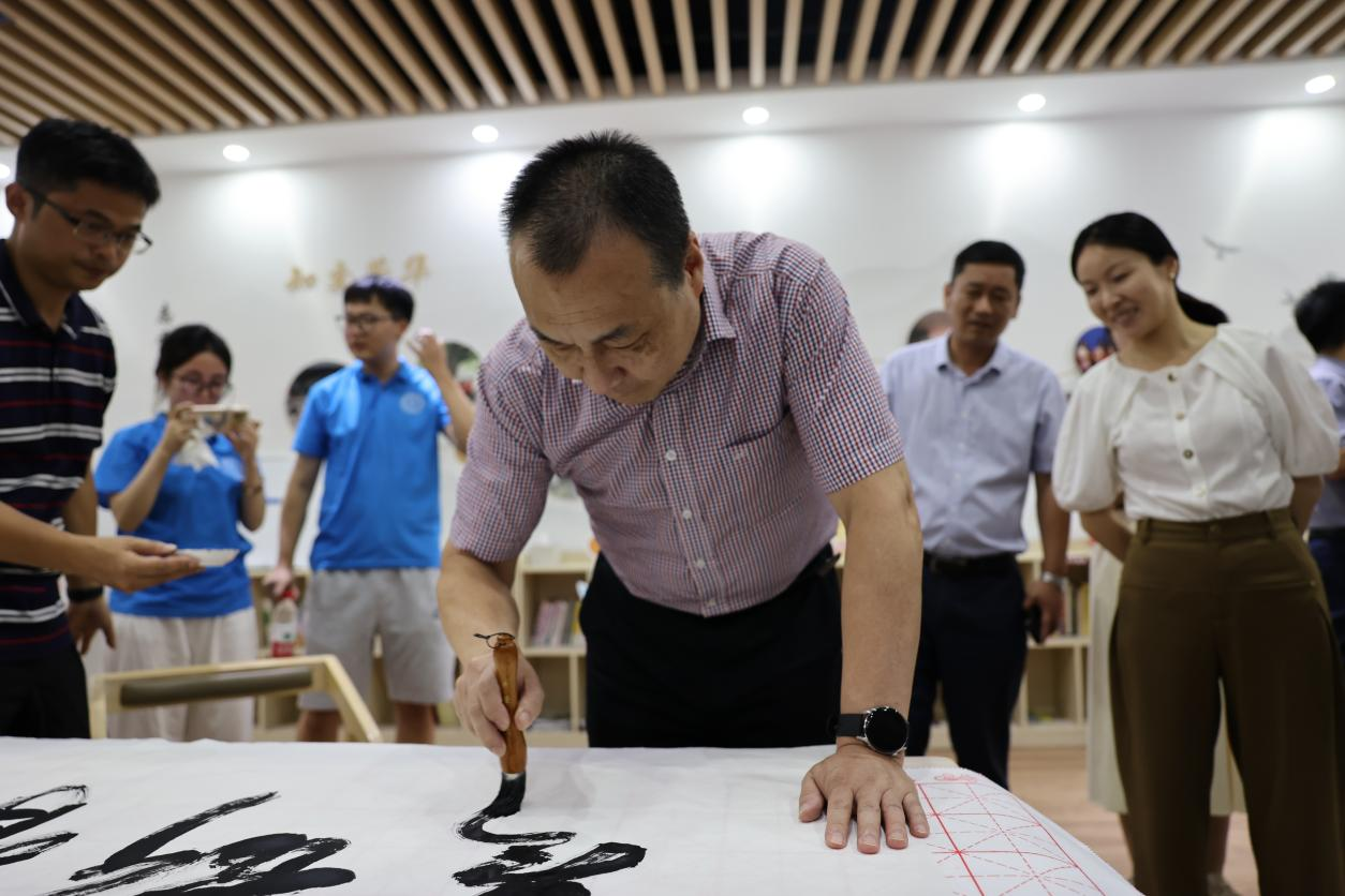 李金昌书记一行来到凤凰村颐乐养中心活动室,现场观摩了实践团开展的助老活动,了解了衙前镇和凤凰村的发展历程和建设情况,并由感而发泼墨写下“老有所为”四字赠予凤凰村颐乐养中心。