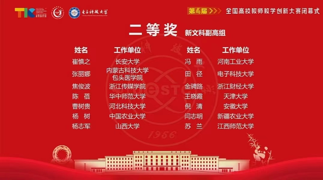 本网讯7月31日,由教育部高等教育司指导、中国高等教育学会主办的第四届全国高校教师教学创新大赛全国现场赛在成都落下帷幕。经过激烈角逐,我校金融学院金骋路副教授获新文科副高组二等奖。这是我校教师连续三年在此项全国赛事中获奖。