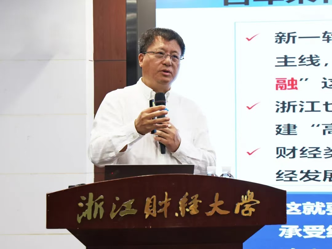 浙江大学副校长黄先海作题为《从浙大看财大:借鉴与启示》的辅导报告。他表示,在加快建设世界一流大学的征程中,浙江大学始终树牢立德树人根本任务,不断增强改革发展的战略定力和奋进动力。他介绍了浙江大学近年来实现跨越式发展的经验做法和创新案例,并从对标式赶超、根本性路径、驱动力激发、外部性助力等四个方面对学校建设特色鲜明的一流财经大学提出了建设性思路。