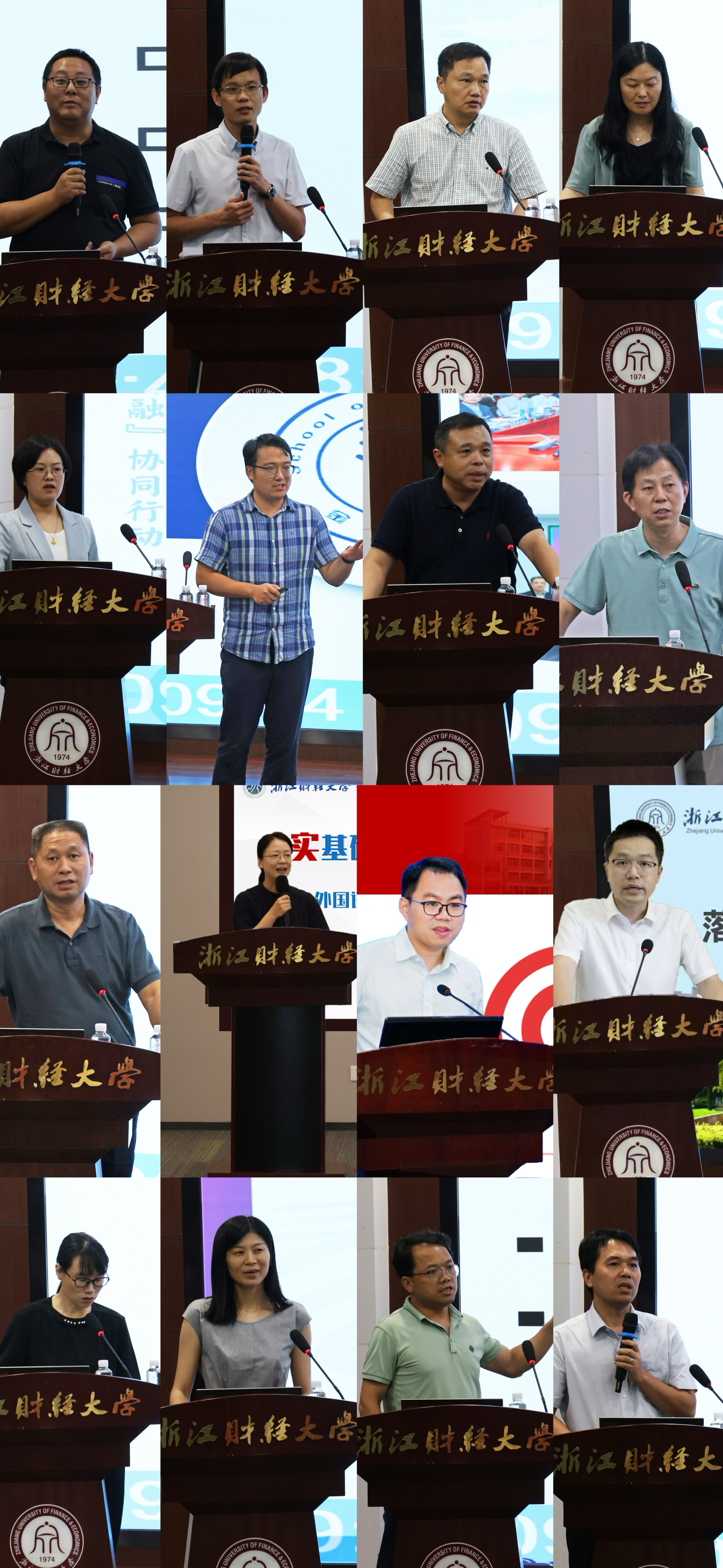 文华学院、浙研院、财税学院、公管学院、会计学院、金融学院、管理学院、信智学院、经济学院、法学院、外语学院、数科学院、人文学院、艺术学院、马院、盈阳学院等负责人围绕“新财经战略”落实情况和下一步工作打算作交流发言。