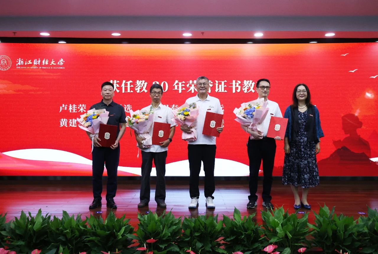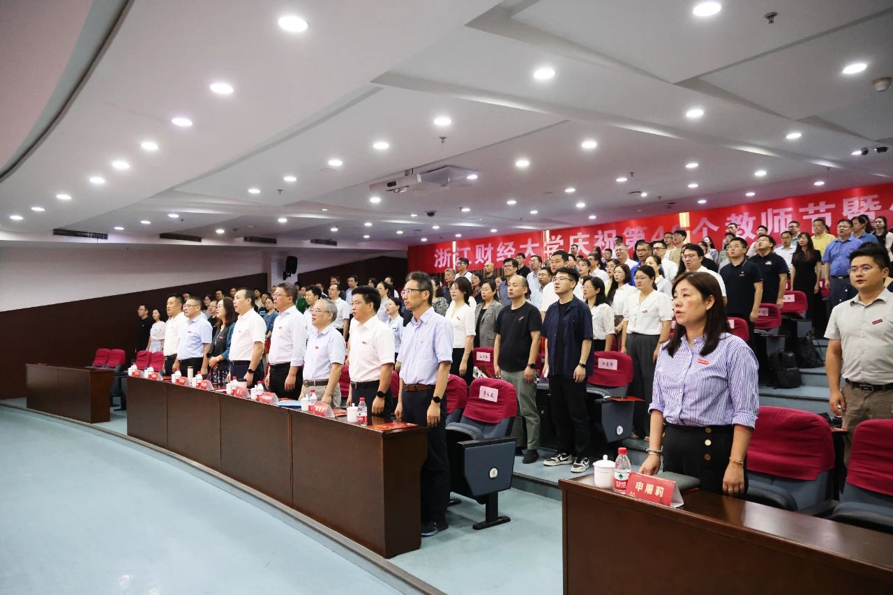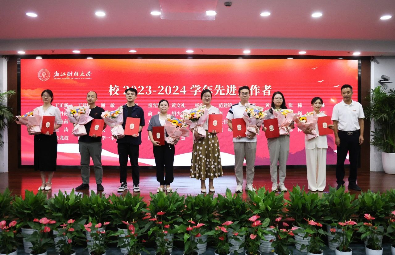 李金昌充分肯定了过去一年全校教职工取得的成绩,他表示,学校正深入实施“新财经战略”,着力推进“三支队伍”建设,亟须培养造就素质优良的干部队伍,业务精湛的教师队伍,保障有力的服务队伍。他对广大教职工提出三点希望:一要坚定理想信念。要坚持不懈用习近平新时代中国特色社会主义思想凝心铸魂,增进广大教师对中国共产党和中国特色社会主义的政治认同、思想认同、理论认同、情感认同,自觉践行教育家精神,坚定为党育人、为国育才使命,全面担当起学生健康成长指导者和引路人的责任。二要厚植道德情操。要积极践行社会主义核心价值观,模范遵守新时代教师职业行为准则,自觉捍卫教师职业尊严,涵养高尚师德师风,以德立身、以德立学、以德施教,勤修乐教爱生、甘于奉献的仁爱之心,用大爱书写教育人生。三要提升素质能力。要传承启智润心、因材施教的育人智慧,将高校教师学科能力和学科素养提升作为重要内容,应对新技术变革,适应基础学科、新兴学科、交叉学科发展趋势,站在学科前沿开展教学、科研,创新教学模式方法和模式,不断提升教书育人质量。他希望大家始终坚守信念、恪尽职守,奋发图强、孜孜不倦,争做“四有”好老师,锚定在高质量发展中“两个先行”奋斗目标,以“浙财发展有我”的责任担当,全身心投入到各项工作中来,勇担新时代新征程学校高质量发展重任,以优异成绩迎接建校50周年华诞!会议对我校的浙江省特级专家称号获得者、全国教育系统先进个人“全国模范教师”、享受政府特殊津贴专家称号获得者、入选省级人才获得者、全国高校教师教学创新大赛获奖者、获任教30年荣誉证书教师及校风华奖获得者、浙江省第四届高校教师教学创新大赛获奖者、浙江省第十三届高校青年教师教学竞赛获奖者、第十届浙江省高校辅导员素质能力大赛获奖者、校第二届教学新秀奖、教学优秀奖获得者、校第四届教师教学创新大赛获得者、产教融合赛道获奖者、校2023-2024学年先进工作者、校2023-2024学年优秀教师、校2022-2023学年优秀本科生班主任、校2022—2023学年优秀辅导员进行了表彰。