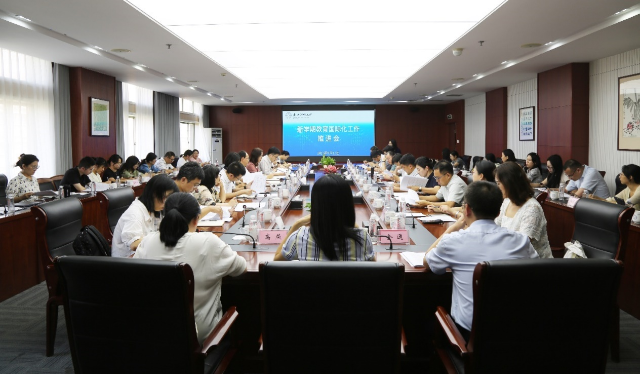 本网讯9月12日,学校召开新学期教育国际化工作推进会。副校长郑亚莉主持会议。相关职能部门负责人,各学院负责人及外事联络员参加会议。