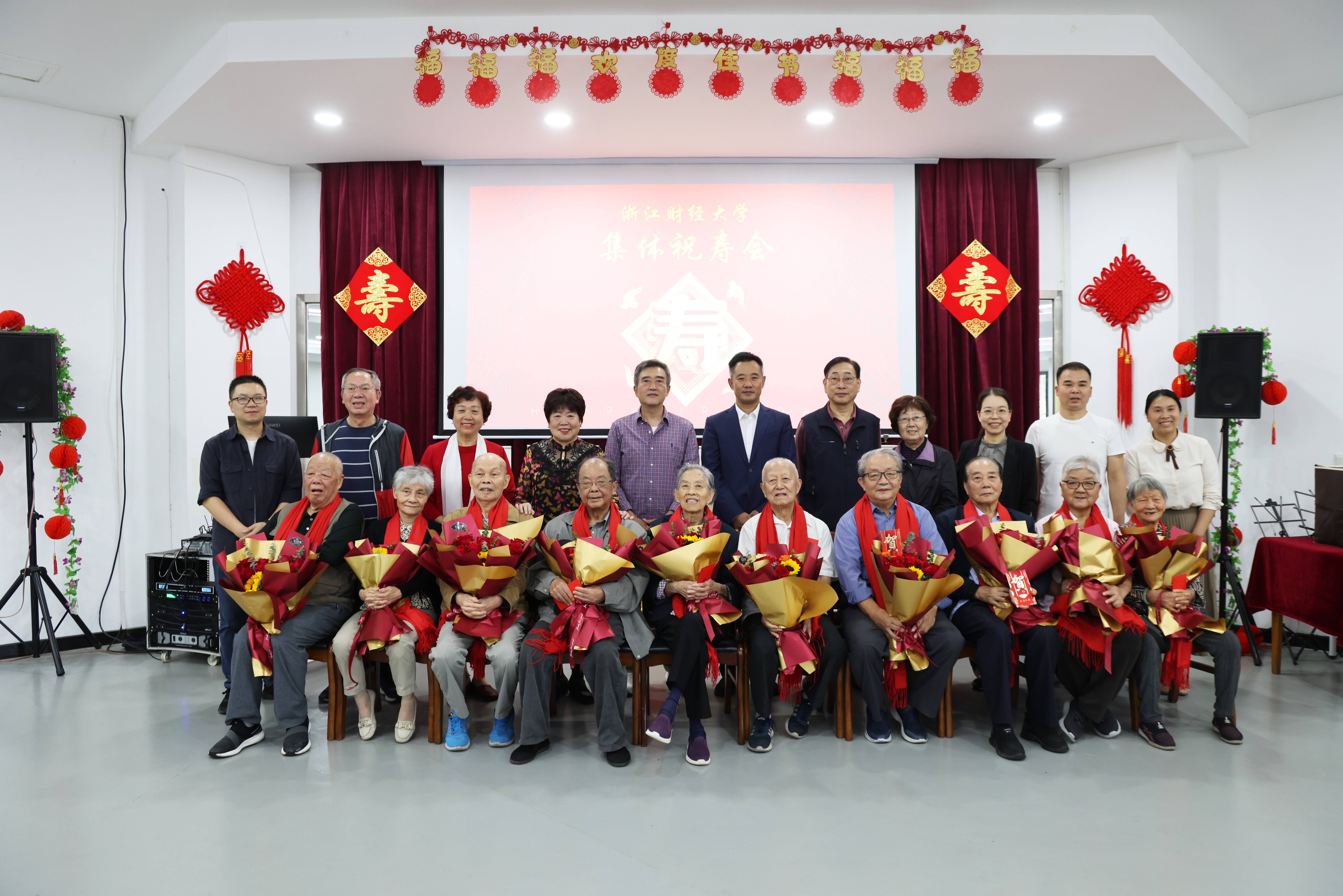 本网讯重阳祝寿,岁岁安康。10月11日,学校为年满90岁、80岁老同志举行集体祝寿活动。校党委副书记程爽出席活动。