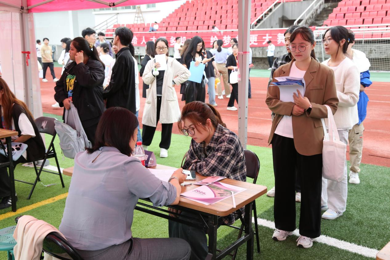 中信证券浙江分公司的摊位前聚满了投递简历的学生,负责校招的各地人事主管都在积极地向应聘者介绍企业情况。中信证券省公司的校招负责人介绍,ued体育 的专业与企业需求匹配度非常高,学生素质也非常好,每年都有一大批毕业生录用,实现了校企合作双赢。应对今年的就业新形势,在校招的时候提出了很多更能吸引应届毕业生的举措,今天省内来了20多个地区的招聘主管,提供了200余个岗位,现在已经收获简历近400份,公司为每位同学提供了校招培训生岗位。
