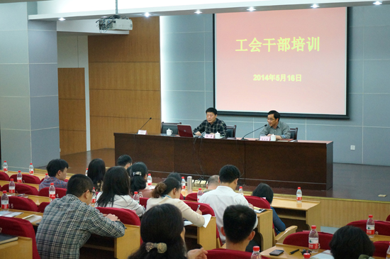 为加强学校工会干部队伍建设,提高工会干部的理论素养和业务工作能力,推进学习型工会组织建设,5月16日,我校举办了2014年工会干部培训班。省教育工会副主席陈勇应邀到会作专题报告。校党委副书记、工会主席朱永康出席并主持会议。