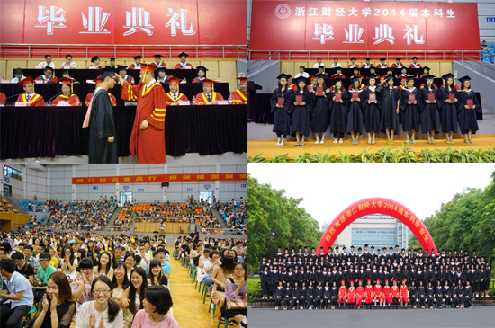 “我们的欢笑泪水,财大为我们承载;我们的收获挫折,财大伴我们成长。” 工商管理学院的陈梦怡作为2014届毕业生代表发言,“我们会秉承‘进德修业,与时偕行’的校训,以优秀的工作业绩彰显财大学子的风采!我们坚信:今天我们以浙财大为荣,明天浙财大以我们为荣。”财政与公共管理学院的阮逸达也作为在校生代表发言,对2014届毕业生表达了深深的感谢和祝福。