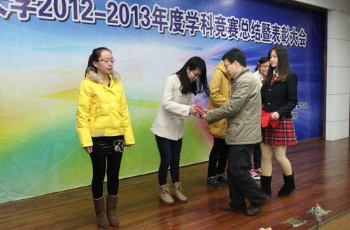 教务处分管领导对2012—2013年度学科竞赛工作作了总结报告。优秀指导教师及获奖学生代表就参赛历程发表了感言。大会对优秀指导教师、先进个人以及获优秀组织奖的学院进行了表彰。