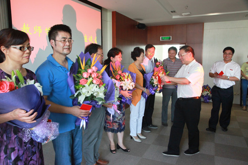首先,校领导为任教三十年教师、校优秀教师、先进工作者等代表颁发荣誉证书,并向受表彰的先进个人表示祝贺。