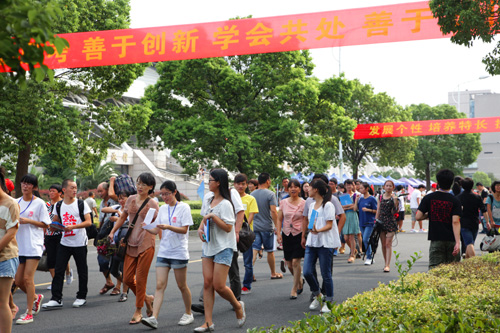 迎新当天,学校在东站火车站、城战火车站和汽车客运中心站三大客流大站设立了新生接待站,组织了志愿者和专车迎接新生和家长。在暑期,工作人员就已经到各车站实地考察、熟悉环境,确保迎新工作的安全顺利。在校园内,学校更是组织了数百名志愿者,对新生进行“一对一”甚至“多对一”服务,为新生搬运行李、介绍校园、牵路引道,将新生们一一送到对应的寝室。对来校的私家车学校则按照事先规划的行车路线引导车辆有序行驶和停放。