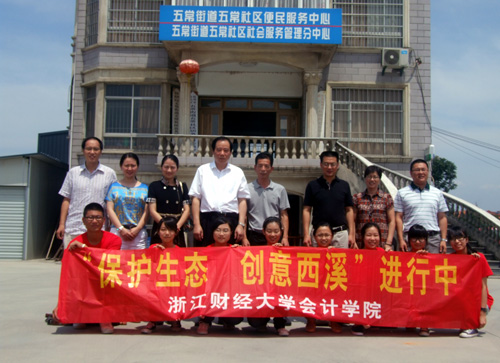 7月25日上午,王俊豪校长在党校办负责人等相关人员陪同下赴余杭五常社区走访座谈,看望慰问了我校会计学院“保护生态,创意西溪”大学生暑期社会实践团队。