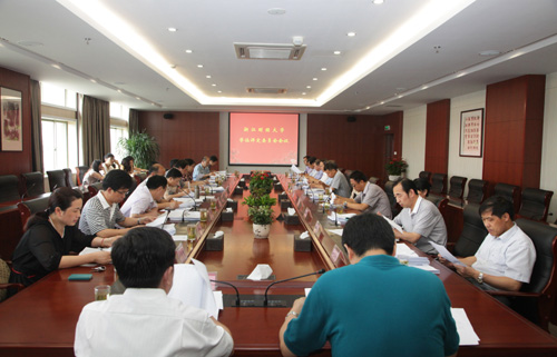 6月24日下午,我校学位评定委员会会议在行政楼406会议室召开。会议由校学位评定委员会主任委员、校长王俊豪主持,校学位评定委员会副主任委员、党委副书记王宇航,副主任委员、副校长卢新波等出席了会议。
