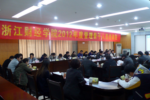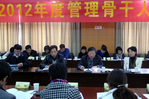 11月26日下午,我校举行2012年管理骨干人员培训班开班仪式,副院长钟晓敏出席仪式并讲话,校纪委书记朱根弟应邀作主题报告。
