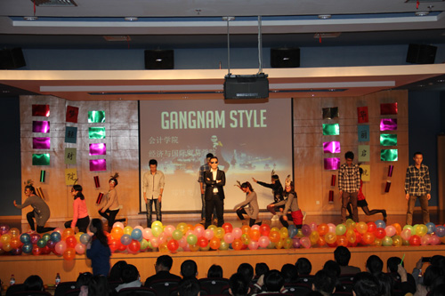 在卢新波副院长宣布第七届研究生博文节开幕后,研究生们自编自导的各类节目纷纷登场。幽默诙谐的相声小品,婀娜多姿的舞蹈,优美动听的器乐弹奏,深情款款的歌曲串烧,现代创意的走秀,各具特色的学院风采展示,赢得了现场同学的阵阵掌声与喝彩……贯穿其中的人人墙留言和抽奖活动更是成为一大亮点,将晚会推向一个又一个高潮。整场晚会精彩纷呈,气氛热烈,笑声不断。