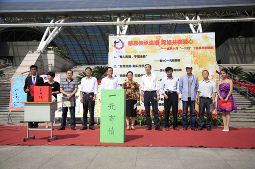 首先进行的是信息学院、数统学院“新生感恩季系列活动”的成果展示。随后,现场的同学参加了“以芯换心,一元寄情”活动,寄出手中的家书,给父母家人送上了自己的感恩和祝福。最后,在场领导与所有师生共同参与“赠人玫瑰,手留余香”活动,共同献出一元爱心,王宇航副书记通过“爱心一元钱”网络平台捐助,正式开启了“网聚爱心,关爱你我”网络一元钱捐助活动的大幕。