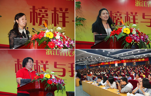 随后,三位优秀女性代表,全国道德模范、全国三八红旗手标兵、阿里巴巴网络技术有限公司员工吴菊萍,全国劳动模范、全国三八红旗手、杭州三替集团总经理陶晓莺,“金牛奖”提名人、优秀女大学生村官、临海市涌泉镇人大新农村建设带头人副主任、涌泉镇横路村党支部书记项玉君结合自身成长和工作经历做了精彩的励志演讲。600多名浙江财经学院的师生共同分享了三位优秀女性的成功经验和人生感悟。