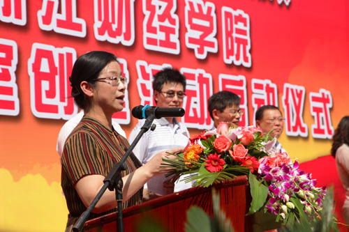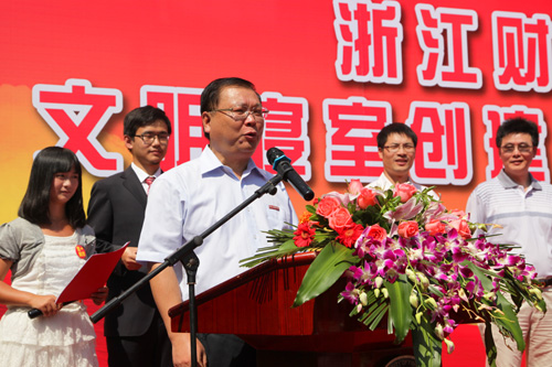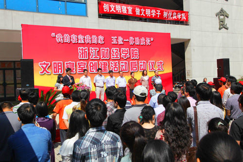 在启动仪式上,校学生会章敏灵同学宣读了创建文明寝室倡议书。财政与公共管理学院操世元副教授代表全体教师发言。