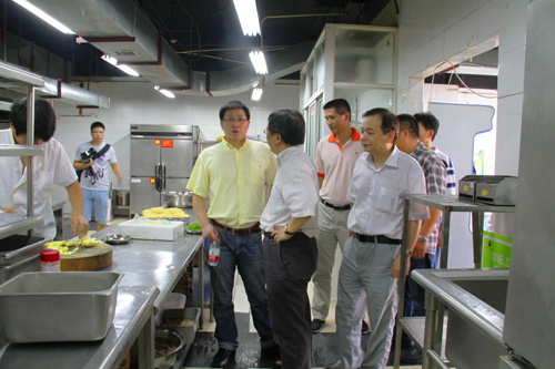 检查组成员认真检查了学术餐厅、文华餐厅、文潮馆和沿街商铺,对食品质量、操作流程和商铺的营业证照进行了详细的检查,强调要对检查中发现的问题立即予以整改,要求从业人员持证上岗、规范操作,严把食品安全关,坚决杜绝食物中毒等恶性事故发生,确保校园安全稳定。