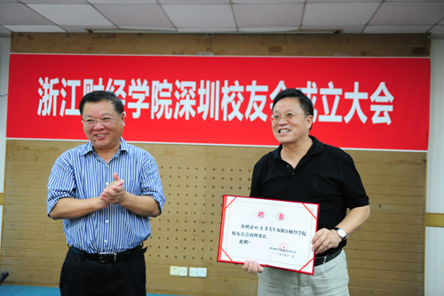 会议介绍了深圳校友会的筹备情况,通过了《浙江财经学院深圳校友会章程》,选举产生了第一届理事会,校领导韩翼祥、黄建新给有关人员颁发了聘书。知名校友、深圳富春东方集团有限公司总裁胡惠康当选名誉会长,同时被聘任为校友总会副理事长;全国十大青年法学家、深圳大学教授应飞虎校友当选为会长,应强校友为副会长,陈玮格校友当选为秘书长,孙芳校友当选为副秘书长。并聘任骆浪萍校友、曾月英校友为顾问。