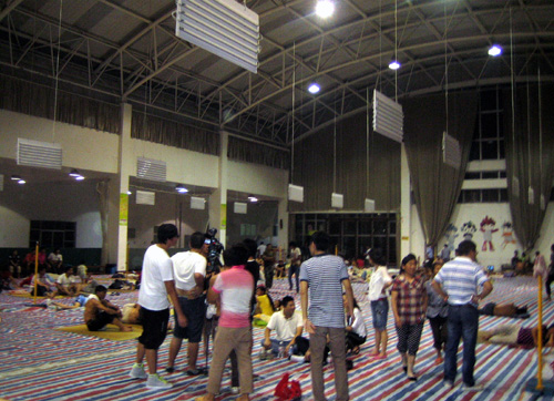 截至8月7日晚上六点,我校东体育馆已经安排了1000余人,这是本次抗击台风下沙地区最大的应急疏散点,也是我校作为应急疏散点以来安置人员最多的一次,浙江卫视对此也作了专门报道。
