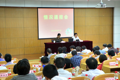 通报会上,卢新波副院长就我校申报服务国家特殊需求博士人才培养项目的情况进行了通报,他介绍了我校申报的项目在经历了繁复的程序、付出了艰苦的努力后最终成功入围的整个过程。黄建新副院长就学校申报大学建制等工作情况作了通报,介绍了工作进展、阶段性成果和面临的激烈挑战。钟晓敏副院长就岗位绩效工资实施进展情况作了通报,介绍了绩效工资实施方案的原则、特点和完善的过程。朱永康副书记就学校组织工作满意度的情况作了通报,介绍了我校组织工作满意度测评情况,针对性的整改措施,并就如何进一步做好今年满意度测评的准备工作作了具体布置。