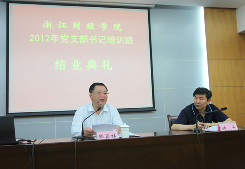 本次培训班共有51名教工党支部书记、78名学生党支部书记参加,先后举办了5次讲座,1次小组讨论和1次大会交流,内容涉及理论学习、政策宣讲、业务培训等。邀请了杭州师范大学教授、杭州市中国特色社会主义理论体系宣传教育讲师团成员曹力铁,省委教育工委组织处副处长陈仁坚分别作专题报告。校党委副书记朱永康围绕新修订的《普通高等学校基层组织工作条例》进行了解读辅导,组织部、工商管理学院党总支、法学院党总支负责人还作了相关专题讲座。