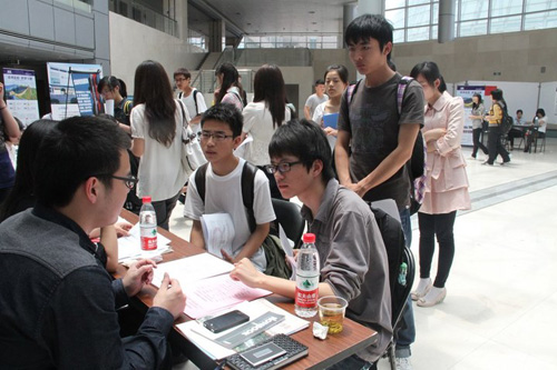 上午11时,招聘会正式开始。同学们踊跃参与,共有近900名学生参加了招聘会。不少同学表示,要充分利用这个机会展示自己、锻炼自我,接触社会。一些大二的学生表示自己是抱着丰富面试经验,提前找工作预演的心态来应聘的。在应聘的人群中,还有大一的同学也跃跃欲试,他们认为这是一个增长见识的好机会。