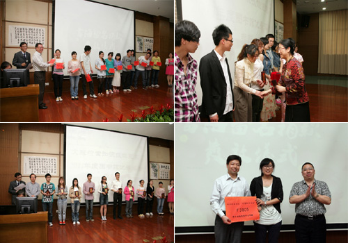 读书节各活动奖项的颁奖在欢乐轻松的演出节目中穿插进行,第七届读书节组委会名誉主任、校党委副书记王宇航,副院长黄建新等领导为获奖者颁奖,各竞赛项目获奖者一一上台领奖。