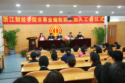 4月13日上午,我校举行非事业编制职工加入工会仪式。省教育工会副主席陈勇、校党委副书记、工会主席朱永康、副院长黄建新、校工会、后勤服务总公司负责人及各分工会主席出席大会,本次新加入学校工会的非事业编制职工会员代表100余人参加入会仪式。