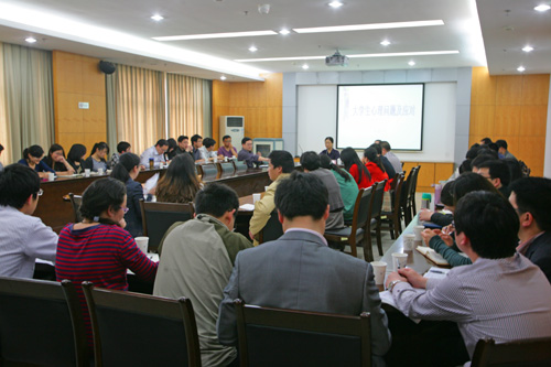 4月11日下午,我校在行政楼200会议室召开心理健康教育专题辅导会,会议由校党委副书记王宇航主持,各二级学院分管书记、全体辅导员及学生处相关同志参加了会议。