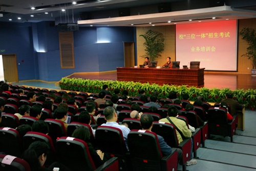 4月10日下午,学校邀请浙江工业大学发展规划处副处长、浙江工业大学2012年“三位一体”招生面试的培训专家金惠红教授,对即将入库学校2012年“三位一体”招生面试的234名专家人选进行业务培训。校党委副书记、校“三位一体”招生工作领导小组副组长王宇航出席会议并讲话。会议由校纪委书记、校“三位一体”招生工作领导小组副组长朱根弟主持。